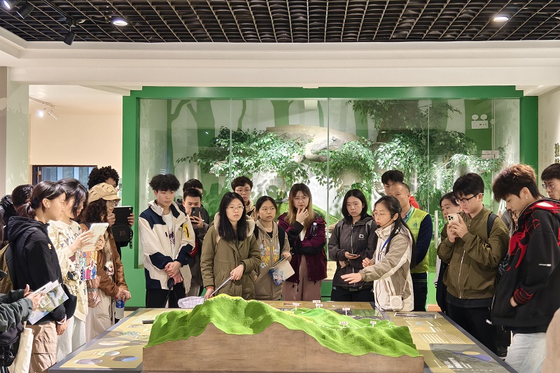 活动上午,同学们首先在保护区工作人员的带领下参观了鼎湖山自然教育中心。工作人员结合沙盘模型介绍鼎湖山,重点介绍了鼎湖山保护区历年来的重大事件、历史年鉴、重点珍稀保护动物标本、中国国家级自然保护区的分布及以自然保护区作为研究平台所取得的科研成果等。通过参观,同学们对鼎湖山保护区的全貌有了基本了解,并对展览室所展示的黄花大苞姜的滑动式自花传粉机制产生了浓厚兴趣。