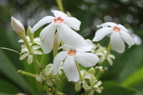 夏日大雨滂沱之后,花儿都垂下了高傲的头,而有一种花不仅没有偃旗息鼓,而在雨后更顽强地绽放,树上开满白花,洁白而芳香,它就是海杧果。因果实像芒果而得名,不过千万不要因长相似芒果而误食,会致死。