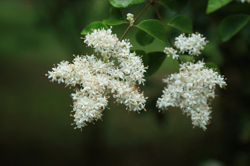 山指甲(Ligustrum sinense Lour.),又名小腊、紫甲树、水黄杨,木犀科(Oleaceae)半常绿灌木或小乔木。叶对生,纸质或薄革质,卵形、长圆形或披针形。聚伞花序排列成圆锥花序状,花多,细小,芳香;花冠漏斗形,白色。花瓣4枚,花两性,雄蕊2枚,长长伸出花瓣外,招蜂引蝶为其授粉。核果近球形,熟时紫黑色。花期3-6月,果期9-12月。