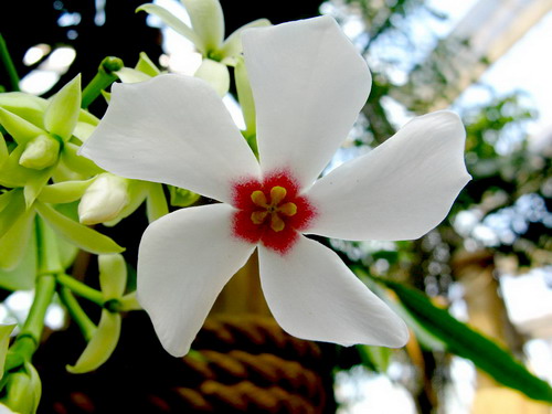 曾经有人说过,在自然界,越危险的东西往往越美丽迷人。在热带雨林温室,有一种植物,其花美丽娇艳,散发着淡淡的茉莉香味,吸引众多游人驻足观赏,这就是浑身暗藏致命毒汁的海芒果(Cerbera manghas Linn.)。海芒果为夹竹桃科常绿乔木,因其生于海滨湿地,果实看起来像小芒果而得名。其实芒果是漆树科植物,二者并没有亲缘关系。
