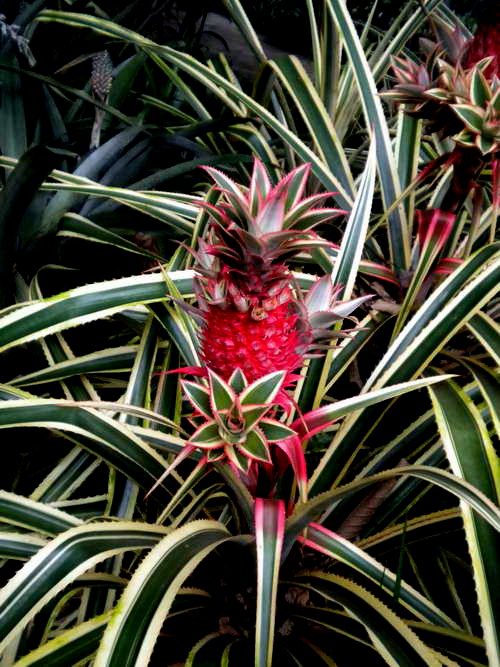 现在,植物园的生物园和凤梨园的凤梨开始成熟了,大家可以到植物园里来赏其风姿。凤梨园还种植了栽培品种七彩凤梨,叶色黄绿相间,果实艳丽,极具风情。