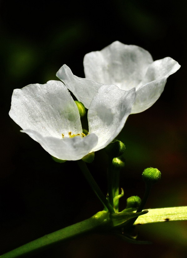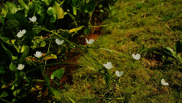 它广泛分 布于南美洲的巴西、阿根廷、乌拉圭等地。皇冠草属大型丛生型水草,其茎基粗壮,叶柄高,叶面宽阔,叶形优美,色泽清翠,在茎基部生长出10-20片宽大的叶片,排列呈莲花形。最大的皇冠草可以长出近百片叶子,最大叶长可达半米。其花期很长,可以从5月一直持续到9月,单朵花的寿命却很短,日出时开放,至傍晚就凋谢了。但其花的姿态优雅,洁白的花瓣,淡黄色的花心,一尘不染、十分可人。在水边成片种植的时候,其花此起彼伏,极具观赏价值。