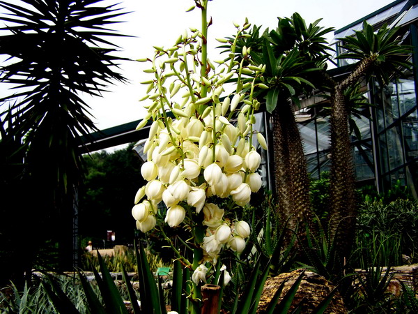 荷兰铁高耸挺拔,植株有时丛生,叶剑形,呈螺旋状排列象莲座。常在金秋十月前后开花,圆锥花序由莲座中间抽出,花葶粗壮,姿态优美,花朵洁白繁茂,大而下垂,常于晚间开放,开时放出奇香,在原产地会吸引一种丝兰蛾来访。蛾的口腔有细长能弯曲的吻管,用以收集花粉并搓成小球状,交配后的雌蛾会将卵产在花朵的子房中,并将球状花粉团精确填充在柱头上。荷兰铁得丝兰蛾的传粉而受精,其幼虫则以荷兰铁胚珠为食料而存活,两者之间相互适应和谐共生是自然界的一种有趣的生物现象。