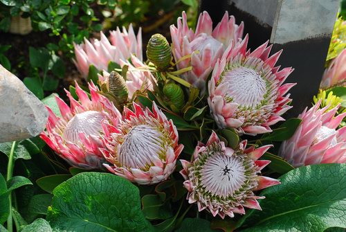 帝王花(Protea cynaroides),山龙眼科(Proteaceae),又名普蒂亚花,是南非共和国的国花。其花形奇异,色彩艳丽,造型优雅,故脱颖于世界名贵花卉,号称花中之王,寿命达百年以上。