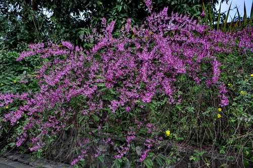 此木蓝花非彼木兰花,虽说没有木兰花之高贵、没有兰花之典雅;但木蓝花的花多而花期长,花开之时,花朵挂满每个树枝,紫色的花朵一串串、一簇簇,开得红红火火,微风拂过,花瓣洋洋洒洒飘落而下,用繁花似锦来形容一点都不为过,当你来到华南植物园见到它的庐山真面目时,相信你定会为之赞叹,并迫不急待的想与它拍照留念。