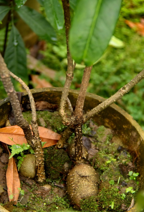缅甸树萝卜是越桔科树萝卜属常绿灌木,分布于我国云南南部、西藏东南部至缅甸东北部。在它的原产地,石骨林立,因此它只能附生在树上或岩石上。附生的根膨大成块状或萝卜状,努力吸收大自然中的养分,茁壮成长。