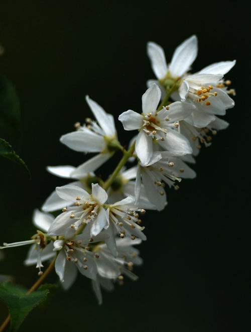 溲疏(Deutzia scabra Thunb.)为虎耳草科溲疏属落叶灌木,学名:别名:空疏、巨骨、空木等。中国特有,原产长江流域各省,多生长于山谷、道路岩缝及丘陵低山灌丛中。树皮薄片状剥落,小枝中空,红褐色,幼时有星状柔毛。直立圆锥花序,花瓣5枚,长圆形钟状,花白色或带粉红色斑点。叶片对生,有短柄;花期4-6月,果期10-11月。除白花溲疏外,有一种托比溲疏,也叫比利时溲疏,是粉红色的,另还有重瓣变种,更加美丽。
