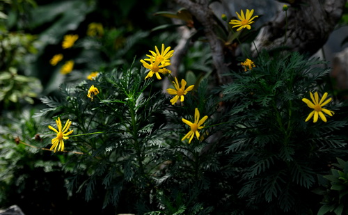 华南植物园高山温室内的情人菊花开正旺,满眼金黄、热烈奔放。菊花中有很多外形都大同小异,为什么偏偏这种叫做“情人菊”呢?原来情人菊以瘦为美,其花茎细长,微风吹过,摇曳多姿,像几个黄衣女子正曼妙舞蹈,柔曼婉约。花瓣外圈大的花瓣舌状花, 通常被称作花心的里圈小花瓣是管状花,而大的舌状花瓣形如眼泪,据说凋谢的时候,花瓣也是一片一片落下的,如同情人的眼泪一滴滴从脸庞滑落,惹人心疼,让人怜惜。所以,芳名“情人菊”。