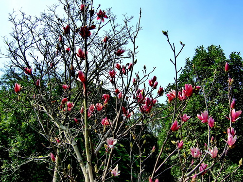 早春二月,乍暖还寒时分,华南植物园木兰园里的各种玉兰花悄然开放了。你看这一树一树白色的玉兰花,雪白亮丽,花香淡洁、雅致飘逸;那边又是满树粉红色的二乔玉兰,姹紫嫣红、绚丽多彩、馥郁清香。还有花开满树的紫红色的红运二乔,吸引来翩翩飞舞的蜂媒蝶使,温馨四溢,满园春色。这些色彩艳丽的花儿正是世界著名的观赏植物——玉兰花。