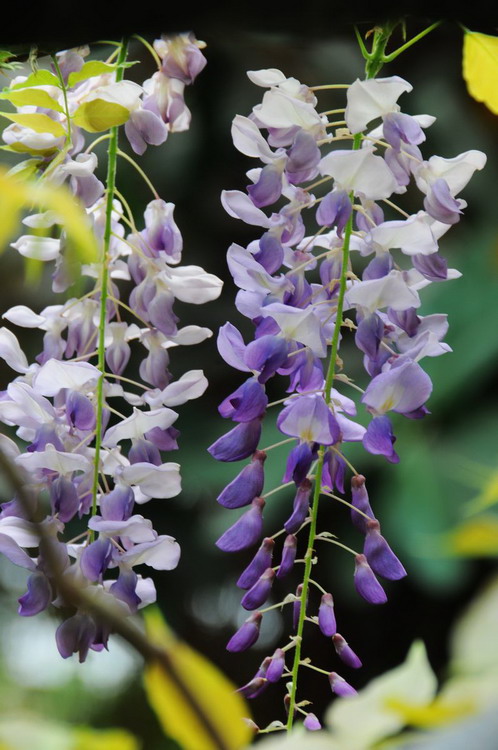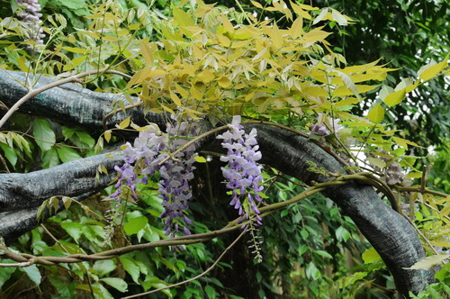 紫藤的花朵很愿意去等待,其每一个长长的花序都是上面的盛开,下面的待放,花的颜色便是上浅下深,好像那紫色是沉淀下来的,沉淀在最小最嫩的花苞里;花序每天绽放一点点,那些浅浅的紫仿佛在流动,在不停地生长。所以紫藤很适合作花架、绿廊,可形成满架浓叶、繁花浩荡的美景,也可制作成盆景,造型千姿百态,甚为优美。