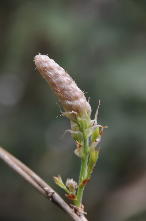 紫藤(Wisteria sinensis(Sims)Sweet)属蝶形花科(Papilionaceae)紫藤属,是我国著名的大型观花藤本植物之一,栽培历史悠久。藤叶互生,奇数羽状复叶,小叶7—13枚,卵状长椭圆形至卵状披针形,先端突尖,基部广楔形,长5—8厘米,幼时密生短柔毛,长成后脱落,全缘。4—6月间开花,花为总状花序,紫蓝色花,花密集,花冠大,有芳香气味,花序长短不一,花可食。果实为荚果,密生绒毛。其老茎刚劲古朴、宛若蛟龙.可长达1 0 米以上,一株大紫藤能独木成林,可以覆盖地面半公顷,重达数百多吨,可开出干百万朵花,气势磅礴,令人赞叹。早在唐代诗人李白就曾有诗云:“紫藤挂云木,花蔓宜阳春,密叶隐歌鸟,香风流美人”,其生动地刻画出了紫藤优美迷人的姿态和园林效果。