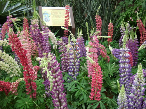 九十年代流行一时的台湾童谣——《鲁冰花》,让大家知道了鲁冰花这种植物,可大家真正见过这种花吗?知道鲁冰花背后的故事吗?其实鲁冰花是一种非常美丽的蝶形花科植物。“五一”期间,华南植物园举办“第四届鲁冰花展”,让游客可以近距离欣赏这种美丽的植物,并了解其中蕴含的文化。本次展出的鲁冰花有3000多株,它们成片种植在各种配花植物之间,美丽的花朵聚集生长在植株顶端,每个花序上开了几十朵小花,有粉红色、紫红色、白色、黄色、橙色、紫色、紫白相间等多种颜色,色彩艳丽,形状独特,数量众多,甚是壮观。鼠尾草、金鱼草、夏堇等配花植物点缀其中,使奇异植物室成为五彩斑斓花的海洋。