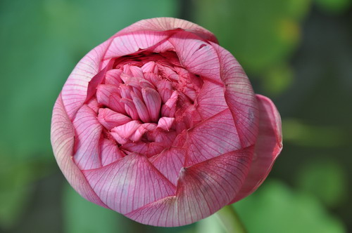 经过专家的精心培育,荷花中的珍贵品种——千瓣莲在华南植物园持续开放。千瓣莲为佛教圣物,在我国晋、隋时期已出现,距今至少1500年。据悉我们熟悉的荷花原始品种为雌雄蕊完全、花瓣数有限的品种。经过长期人工培育,荷花品种雌雄蕊持续花瓣化,花瓣数不断增加,最终演变成雌雄蕊完全花瓣化的千瓣莲品种。千瓣莲为粉红色,花瓣重重叠叠,外瓣大,内瓣逐渐缩小,最小的花瓣只有米粒大,花瓣数达1000枚以上,故而得名。
