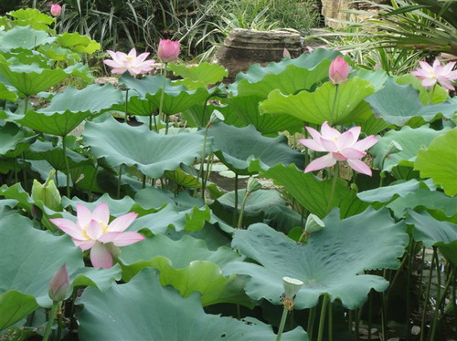 华南植物园温室群景区外围湖面,满池的荷花正争奇斗艳的开放,引来众多游客观赏和拍摄。