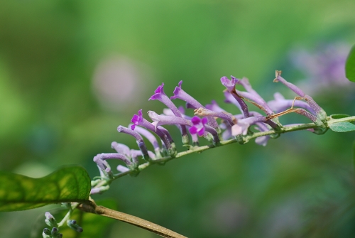 醉鱼草(Buddleja lindleyana Fortune),醉鱼草科(Buddlejaceae)醉鱼草属植物,灌木,高1-3米。叶对生。穗状聚伞花序顶生,长4-40厘米,宽2-4厘米;花冠长13-20毫米,花冠管弯曲,盛花时粉红,晚期粉白,在花总梗上排成一列,粉、白相间,煞是好看。