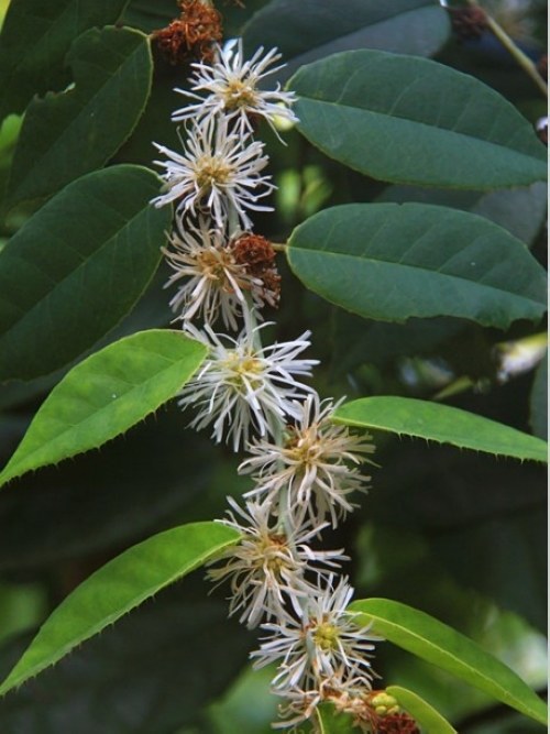 四药门花(Loropetalum subcordatum (Benth.)Oliv.)首次发现于香港,之后近一个世纪都未曾在香港以外的任何地方发现,曾一度被认为是香港特有种。直到1957年,才相继在广西龙州、贵州茂兰、广东五桂山发现极为稀少的植株。因其分布区域狭窄,且数量极少,目前已被IUCN列为稀有植物。