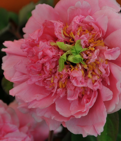 牡丹(Paeonia sufruticosa),有洛阳花、富贵花之称,还有鼠姑、鹿韭、白两金等别称,当然后者显得不太雅,鲜为人知。为多年生落叶小灌木,生长缓熳,根肉质,粗而长,中心木质化,二回羽状复叶。常有“谷雨三朝看牡丹”之谚,因此每年的谷雨时分即4月中下旬至5月是牡丹花开时节,其果实9月成熟。千百年来牡丹在人们心目中留下了深深的、美美的印记。它在隋代进入了宫廷,一直备受皇亲国戚、达官贵人和文人墨客的宠爱,从浩瀚如烟的诗歌、绘画中,从用于生活的陶瓷容器、衣服图案中,从建筑材料的雕刻中等,都能找到它的踪迹。说它是植物界的“富二代”及“官二代”,一点也不为过。