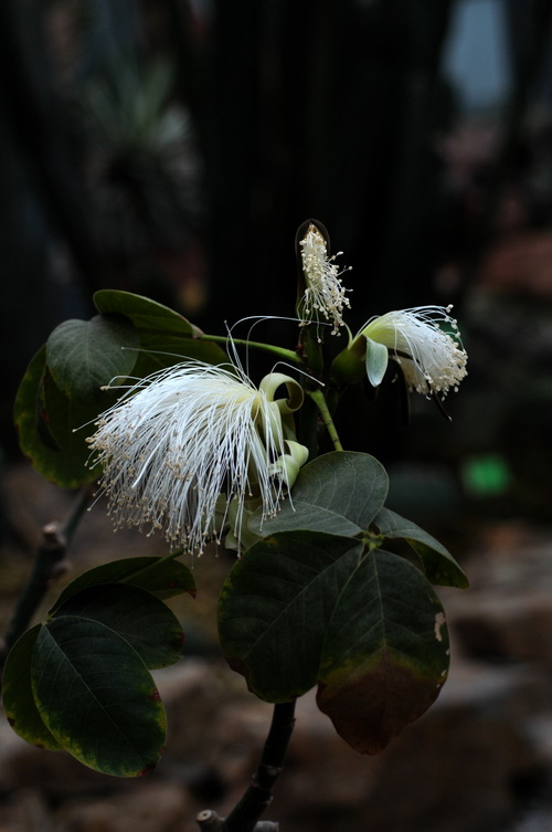 这位“兄弟”来自美洲的墨西哥,为木棉科木棉属多年生肉质植物。其肉质茎的下部不规则膨大,形态奇特,如同一只静卧在地上的巨乌龟;外皮灰色,分布有浅绿色斑纹,表皮龟裂如龟壳,其中贮存了大量水分,以适应干旱炎热的沙漠环境,名如其形,人称:龟纹木棉(Bombax ellipticum)。顶生绿色短枝,高一般不及1m。掌状复叶互生,叶5片,长椭圆形,唯有此点与其“兄长”木棉有几分相似,休眠期叶片会脱落。早春开花,花朵硕大,开放时,花冠为数百条白丝组成,花丝多而长,生长于枝条顶端,呈半球形放射状,若数朵并放,银丝万缕,别有一番风采。