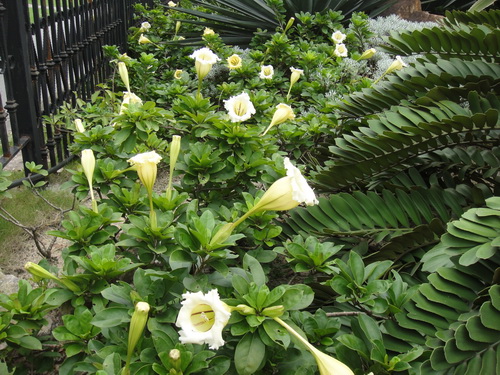 在华南植物园里,现正盛开着像喇叭一样的花——金杯花。微风吹来,此花晃动着像喇叭一样的花朵,向过往的游讲述着初秋的故事。