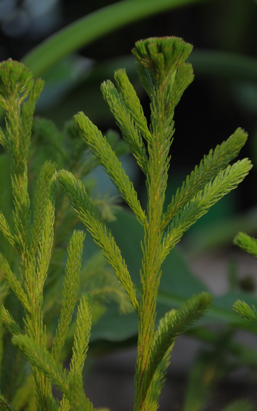 绿珊瑚(Brunla albiflora)具有浓密的叶片,深绿色的叶片如松树叶片的形状,但较之软,四季常绿,由于外形酷似海中的珊瑚,所以也有“陆上珊瑚”的美誉。开花初期,银色的花蕾枝干顶端形成一朵圆形的大花球;盛开时花朵中黄色和白色的花蕊交叉树立在花球中。绿珊瑚是商业切叶的极佳品种,也是自然成型优美的盆植品种和园艺景观植物。