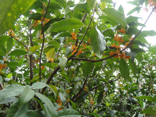走在华南植物园内,阵阵花香扑鼻而来,让人仿佛置身在香的世界里,这就是满树桂花树。诗人宋之问是这样描写桂花的:桂子月中落,天香云外飘,可见桂花的香味多么浓郁,故后人亦称桂花为“天香”。
