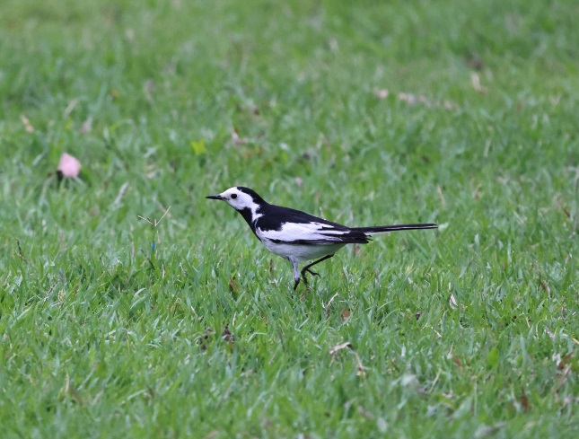 白鹡鸰,头部羽色黑白相间,颇似京剧里的张飞脸谱。走路时,尾巴轻摇。一高一低如波浪状飞行,一边飞一边鸣叫,叫声很像“急令急令”。