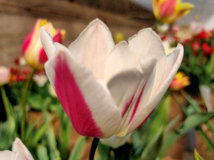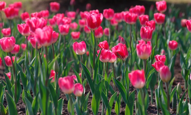 不同颜色的郁金香有不同的含义:红色郁金香代表热烈、永远和纯纯的爱意(图4);黄色郁金香是爱的告白,传达喜爱之情;白色郁金香代表神圣,不染一丝尘埃;粉色郁金香代表永不消逝的爱,可爱而有朝气(图5);橙色郁金香代表美好的回忆,宁静温暖;紫色郁金香代表无尽的爱;黑色郁金香寓意高贵,表达钟爱无二的情感。乙巳蛇年,为了庆贺新春佳节,华南国家植物特别以红色和粉色系列的郁金香为主,打造一片郁金香花海,代表热烈和浓情,因为过年最重要的就是和最爱的人团聚,共同庆祝新春佳节!
