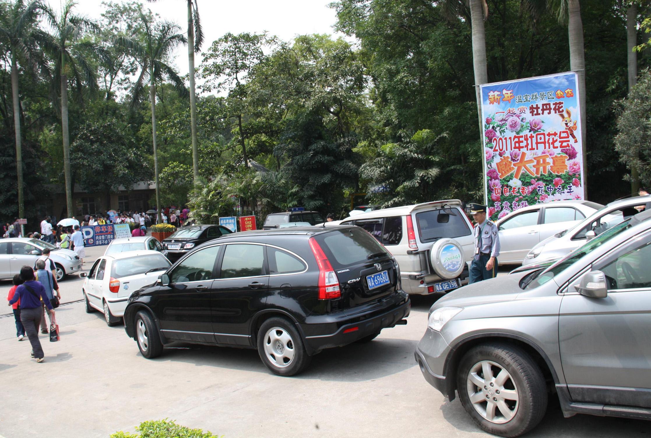 入园参观的车辆排队等候进场