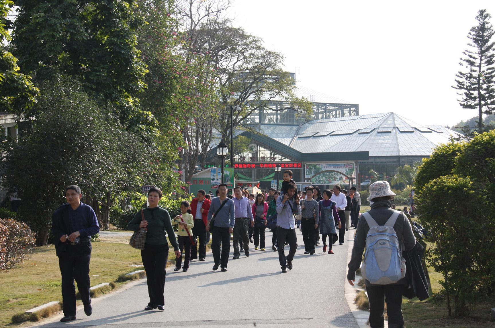 春节黄金周期间,华南植物园形成2011年首个旅游高峰,羸得了2011年旅游市场新春开门红,实现了新春伊始起步高、开局好的良好局面。据统计,华南植物园接待游客人数和门票总收入创历年同期新高,实现入园人数及经济收入“双增长“。同比2010年春节,2011 年春节黄金周入园总人数增长136%,门票收入增长176%,其中温室群景区参观人数增长249%,收入增长248%。