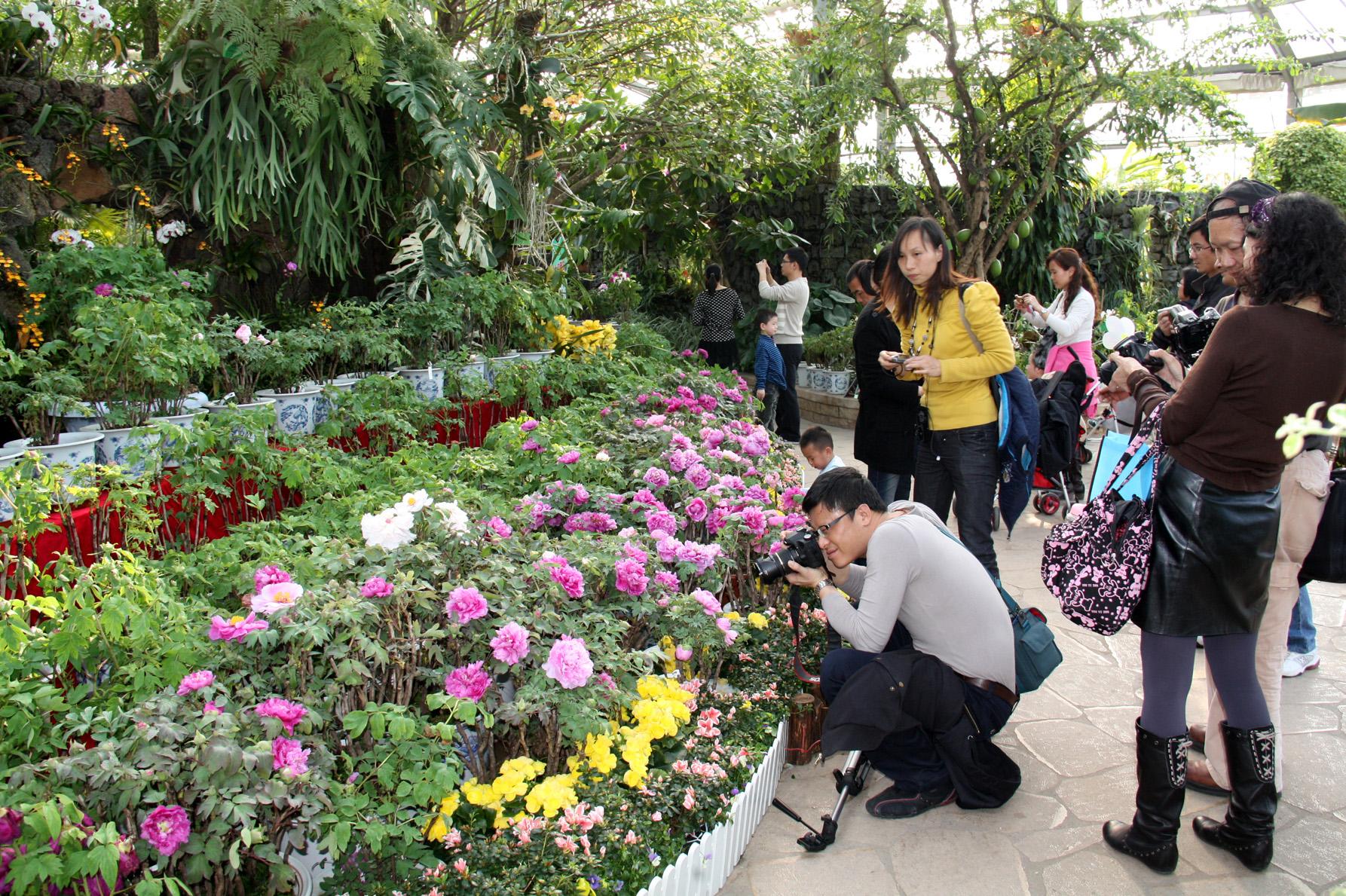 祥虎腾跃辞旧岁,吉兔欢闹迎新月春!兔年在一片喜庆吉祥、欢声笑语中来临。华南植物园为迎接兔年新春,隆重推出三大主题花展迎新春:牡丹花展、山茶花展和生肖植物展联袂登台;同时推出大门门票七五折优惠,为游客献上丰厚的新春见面礼。盛开的鲜花和高高挂起的红灯笼交相辉映,植物园内处处洋溢着浓郁的节日气氛,吸引着全国各地的游客慕名而来。整个春节期间园内人流涌动,热闹非凡。