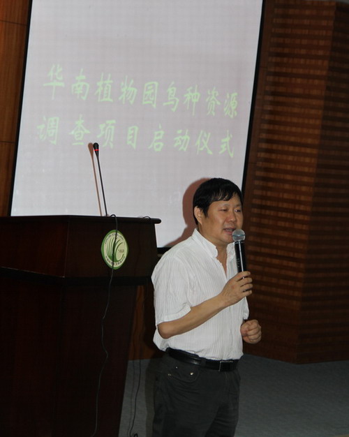华南植物园园艺中心常务副主任、科普策划总工蒋厚泉出席启动仪式并致欢迎词。蒋厚泉简要介绍了华南植物园的科普工作情况,并指出了该项目的科普意义。科普公益活动是一项长远的任务,希望有更多的单位团体和个人积极参与,应当把更多的掌声献给利用业余时间参与科普事业,默默奉献的科普志愿者们。蒋厚泉还指出,此项目遵循人类回归自然、热爱自然的理念,在鸟种调查活动中,也将培养出具有环境保护意识的、有爱心、有责任心、敢于探索自然的新一代,对推动社会科普工作的发展将起到积极的促进作用。