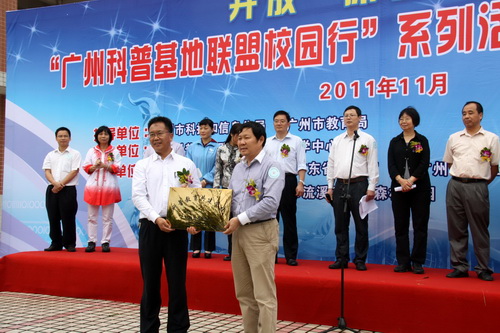 活动开幕式上,广州市科信局、教育局、从化市政府的领导先后致词。蒋厚泉代表“广州科普基地联盟”向鳌头中学颁发了“科普教育共建学校”的牌匾。