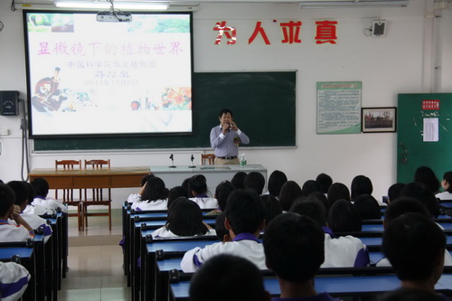 在主报告厅,蒋厚泉为当地学生做了“显微镜下的植物世界”科普报告。报告以植物与人类的关系、植物在城市建设中的作用、保护植物就是保护人类自己、科普大课堂走进植物园、神秘的植物世界等五个方面展开主题内容,充满趣味性、思想性和互动性的科普报告深深吸引着同学们。科普活动展示区,植物园准备的“镜片下的动植物”、有奖知识问答、趣味植物谜语等活动也吸引了大批学生参与。此外,植物园还展出了题为“植物、环境、人类”的科普展示及分发了700余份科普资料。