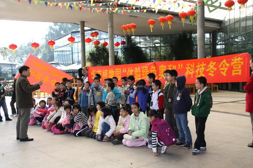 12月5日,华南植物园举办了“体验绿色奥秘”科技冬令营科普教育活动。广州市40多位小学生参加了活动。华南植物园科普策划总工蒋厚泉为冬令营开营致辞并为营员授旗。