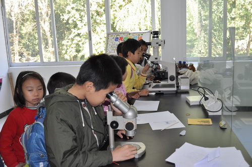 在和煦的冬日暖阳里小朋友参与体验了一系列丰富多彩科普活动。上午,在温室群景区他们观赏了来自世界各地的珍奇植物,包括神秘的热带雨林、耐干旱的各种沙漠植物、来自南极北极的植物、各种水生植物等。他们在猪笼草、炮弹果、洞天树、箭毒木、光棍树、神秘果、龟纹木棉、珙桐树等奇特植物前留下阵阵惊叹。通过导游的讲解,小朋友深切体会到植物的多样性和重要性,增强了爱护植物、保护环境的信念。在制作叶脉书签活动中,小朋友在老师的指导下认真地用牙刷刷掉叶肉,当叶脉逐渐露出来的时候,小朋友也逐渐露出了有成就感的笑脸。在微观世界探秘活动中,显微镜下奇妙的茎、叶、花、子房的细胞结构吸引了小朋友的好奇目光,解剖镜下蝴蝶的复眼结构更是让小朋友们啧啧称奇。