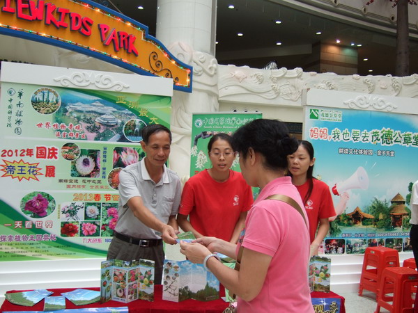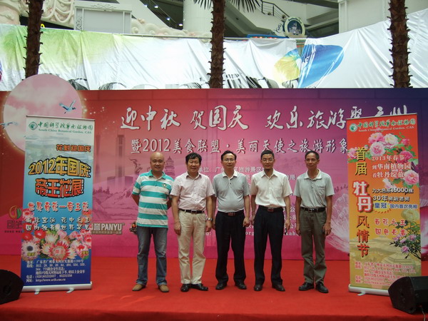 9月11—13日,“迎中秋贺国庆欢乐旅游聚广州” 2012年广州地区旅游景区联合推广活动在广州举行。华南植物园全程参与了此次推广活动,活动期间工作人员积极派发宣传资料,重点向市民推介中秋国庆期间将举办的“帝王花展”。13日下午,华南植物园主任助理蚁伟民、园艺中心执行主任蒋厚泉亲临活动现场,向市民派发资料,并参加了随后举行的闭幕式。