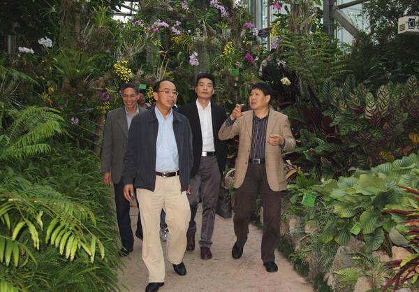 11月19日,广东省森林生态旅游示范基地复核考评组一行6人来园进行现场复核检查。复核考评组由广东省林业厅党组成员、巡视员陈俊勤和广东省旅游局党组成员、副局长张振林任组长,广东省旅游局规划统计处副处长陈卫东任小组长,广东省林业厅申富文科长,广州市旅游局资源开发处副处长张根泉,广州市林业和园林局林泽生副处长等专家组成复核考评组。园艺中心执行主任蒋厚泉对复核考评组专家的到来表示热烈欢迎并就华南植物园森林生态旅游示范基地管理和园区建设、旅游工作作了全面介绍。园主任助理、园艺中心代理主任蚁伟民,园艺中心主任助理林侨生等相关人员全程陪同。