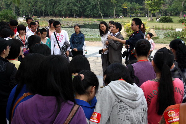 12月16日,在华南植物园、《广州日报》和广州爱心读书团的共同组织下,广州盲校的35位盲童与爱心志愿者携手沐在灿烂的阳光中走进华南植物园。