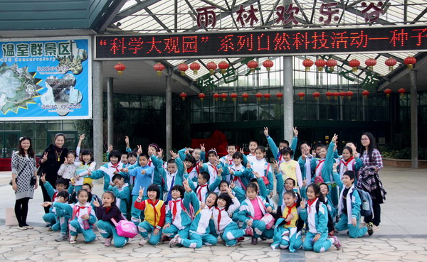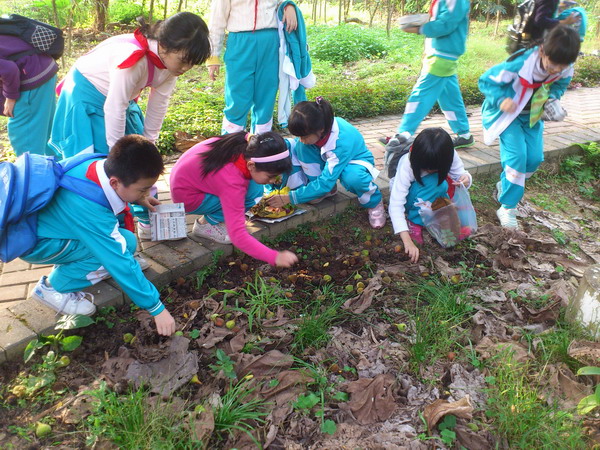 在参观世界珍奇植物中,孩子们才智大比拼,赢取科普辅导老师送出的“石头种子”南蛇勒;在生物园,孩子们睁大眼睛,发挥超强观察力,搜寻各式种子,细心的孩子们为发现“种子”新记录而欢呼雀跃;在科普信息中心,孩子们展示自己捡到的种子,比试谁的品种多,捡到最多品种的孩子被幸运地封为“种子王”,得到珍贵的种子造型做为奖品;随后孩子们还用拣来的种子和花果进行艺术创作,拼出各式美妙的艺术造型;在“玩种子”环节,孩子们惊奇地发现了有趣的新型玩具“种子陀螺”(菴耳柯、荷木种子);最后,在科普辅导老师的悉心指导下,孩子们学习了种子的分类和用途。种子不再是不起眼的小不点,它们是有翅膀会飞的、带伞可盘旋的、多彩可染色的,坚硬胜石头的……