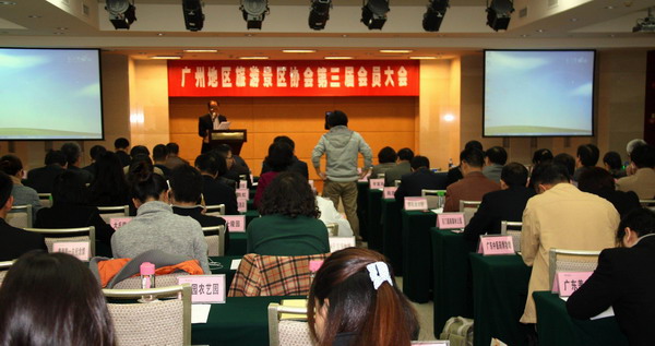 1月27日,广州地区旅游景区协会第三届会员大会在广州隆重召开。广州市旅游局局长朱力、副局长陈永亮,广州市城市管理委员会巡视员孙金龙,广州旅游促进会秘书长邝耀铿,华南植物园园艺中心执行主任蒋厚泉等出席会议。来自广州地区各景区102家成员单位的领导及代表120余人参加了会议。