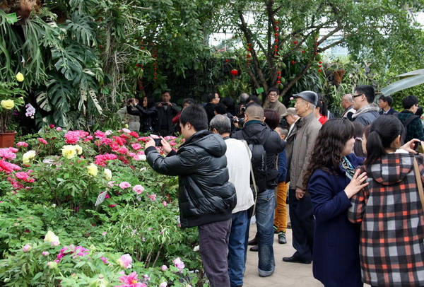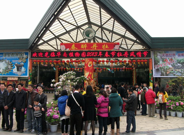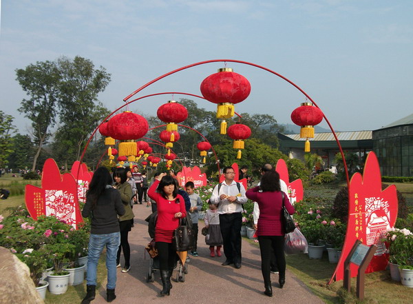 春节至元宵节期间,华南植物园举办了首届牡丹风情节,规模为近30年来花展之最,营造了良好的节日氛围。牡丹的自然花期为春天的4-5月,华南植物园此次从洛阳引进牡丹苗,在园内利用先进的栽培技术,对其进行花期调控,使其反季节提前开花,让南方市民不出远门,春节在家门口就能欣赏“百花之王”的魅力。九大色系、六大花型共60个品种16000盆洛阳牡丹,规模宏大,花色齐全,珍奇品种多,让市民大开眼界。