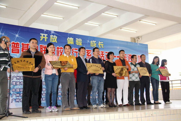 活动开幕式上,举行了“广州科普基地联盟校园行系列活动——走进增城”签约及授牌仪式。广州科普基地联盟与增城市教育局签订合作协议,联合广州科普基地联盟11个成员单位,与增城市11所学校开展为期近两年的科普共建活动,采用“请进来、走出去”等方式,在增城市“以点带面、集中连片”方式广泛开展校园行活动,陈发传、蒋厚泉等领导为共建单位授牌。