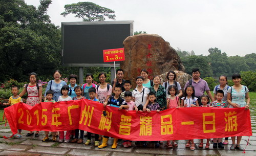 5月25日,由广州市科技创新委员会、广州市旅游局、广州市科技进步基金会主办的“创新创业,科技惠民”—2015年广州“科普精品一日游”活动在华南植物园拉开帷幕。本次活动在广州市科普基地中选定“科普精品一日游”路线,其中,“生态环保科普基地一日游”为“科普精品一日游”系列活动的第一站,华南植物园位列其首为市民开启精彩科普之旅,当天近500余名市民免费参与科普体验。