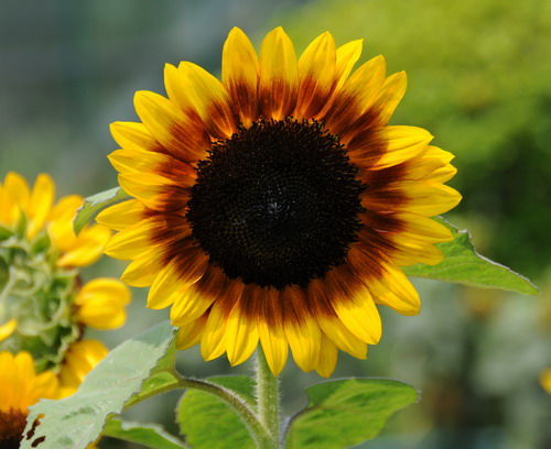 向日葵是一种非常美丽的观赏花卉。除了外形酷似太阳以外,它的花朵明亮大方,极受众人喜爱。观赏向日葵(Helianthus annuus)原产北美,是菊科一年生草本植物。因为来自西方,所以传入我国后称为“西番花”,又名胖金妹、迎阳花、日轮草、望日莲。其高度可达3m,盘型花序可宽达30cm,因花序随太阳转动而得名。其种子叫葵花籽,俗称瓜子,可榨出低胆固醇的高级食用葵花油,也是老少皆宜的零食。向日葵四季皆可种植,但花期主要在夏秋两季,花期可达两周以上。向日葵的花语是爱慕、光辉、忠诚。俄罗斯人、秘鲁人和玻利维亚人把向日葵作为光明和美好的象征,将向日葵选为国花。