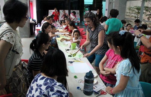 活动现场孩子和家长互相配合,共同创作,采用废旧布料当画笔,发挥各自想象力,在彩纸上随性创作,形成许多独特的植物艺术图形。孩子们将作品贴在对应的月份,共同完成了一份广州的花果月历。Andrea教授手把手辅导每个孩子,鼓励家长参与其中,其独特的自然创作模式激发孩子们丰富的创作热情,也给予孩子极大的想象力发挥空间,取得良好的效果。