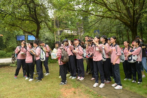 首先由保护区的工作人员为师生们做了生态知识讲座,揭开了鼎湖山保护区的神秘面纱。随后,观鸟指导老师为学生们图文并茂、深入浅出的介绍了野外观鸟的技巧和注意事项。之后,在工作人员的带领下,师生们参观了“中国自然保护区”展厅,其中丰富多彩的生态系统和生物多样性(动植物标本)带给学生们一场别样的视觉体验。