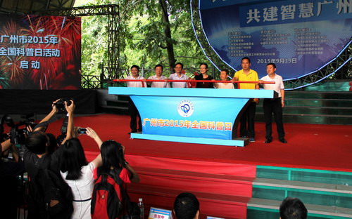 广州市2015年“全国科普日”活动正式启动(李力 中;张景中 右3;冯元 左3;张福生 右1;李定强 左1)