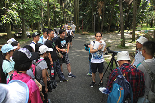 随后,同学们在观鸟与自然导赏老师的带领下进行观鸟活动。对没有任何观鸟经验的同学,首先指导同学们正确使用望远镜、通过鸟叫来辨别方位。白头鹎、红耳鹎、鹊鸲、欧乌鸫、普通翠鸟、珠颈斑鸠、暗绿绣眼鸟、白鹡鸰等鸟类纷纷进入同学们的视野中,它们或矫健或呆萌的身影让同学们既新奇又兴奋,学生们认真观察详细记录,观鸟活动结束时完成了一篇图文并茂的自然笔记。