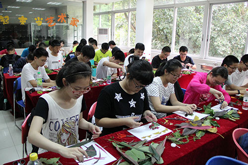 学生们动手制作植物贴画