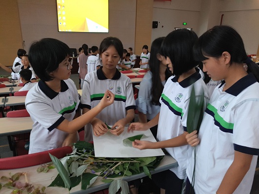 随后,工作人员通过小实验和小活动让学生深刻体验森林的奥秘,通过人工酸碱指示剂——PH试纸和天然酸碱指示剂——紫甘蓝汁的六种颜色变化来体验植物界酸碱性知识,揭示一些植物界颜色变化的秘密;通过发挥学生们的想象力制作的大自然艺术品和通过蝴蝶展翅标本的制作让学生们亲自体验大自然赋予的知识和智慧。最后,学生们在参观精美的动植物展板和有趣的动植物猜谜中结束了此次校园森林之旅。